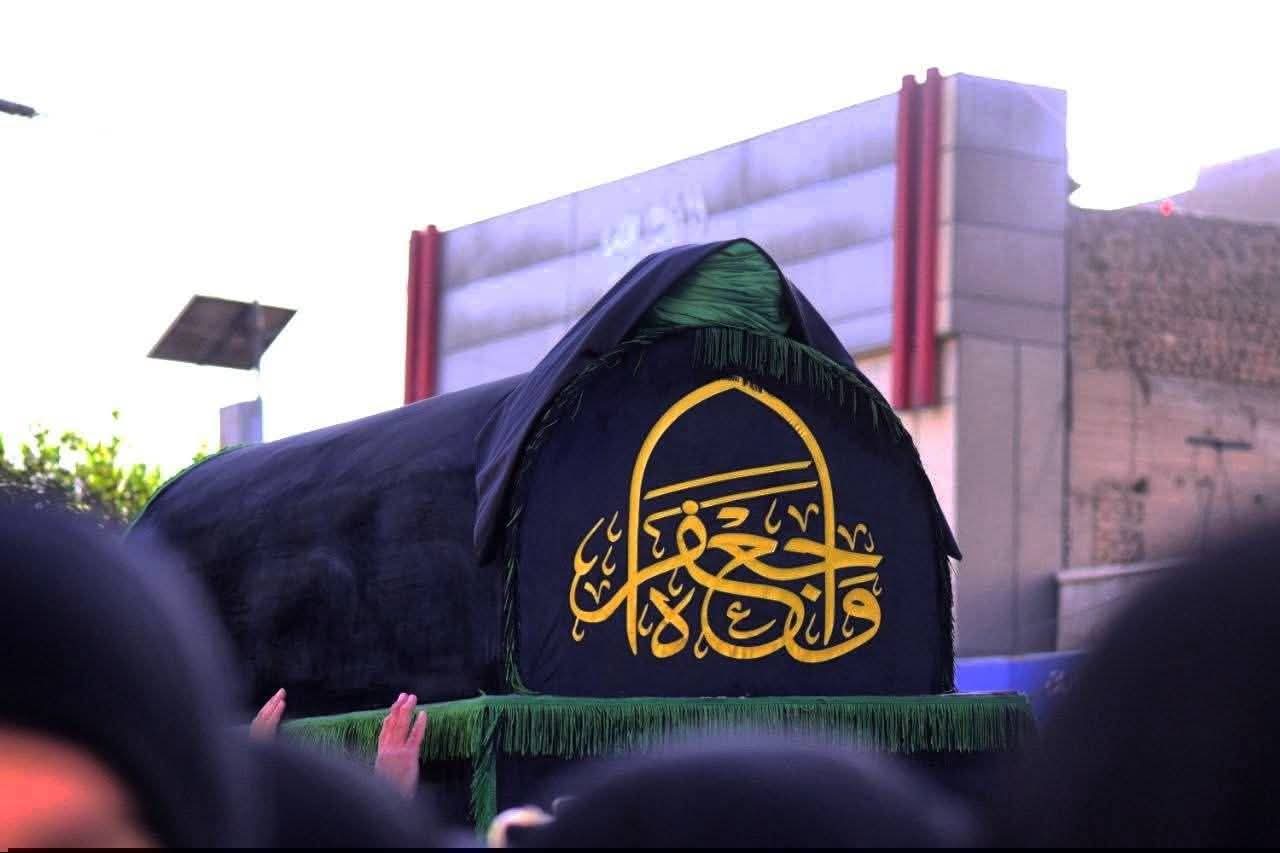 تجسيداً لدور المرأة الزينبية.. مشاركة نسوية واسعة في التشييع الرمزي لنعش الإمام الصادق (ع) في بغداد