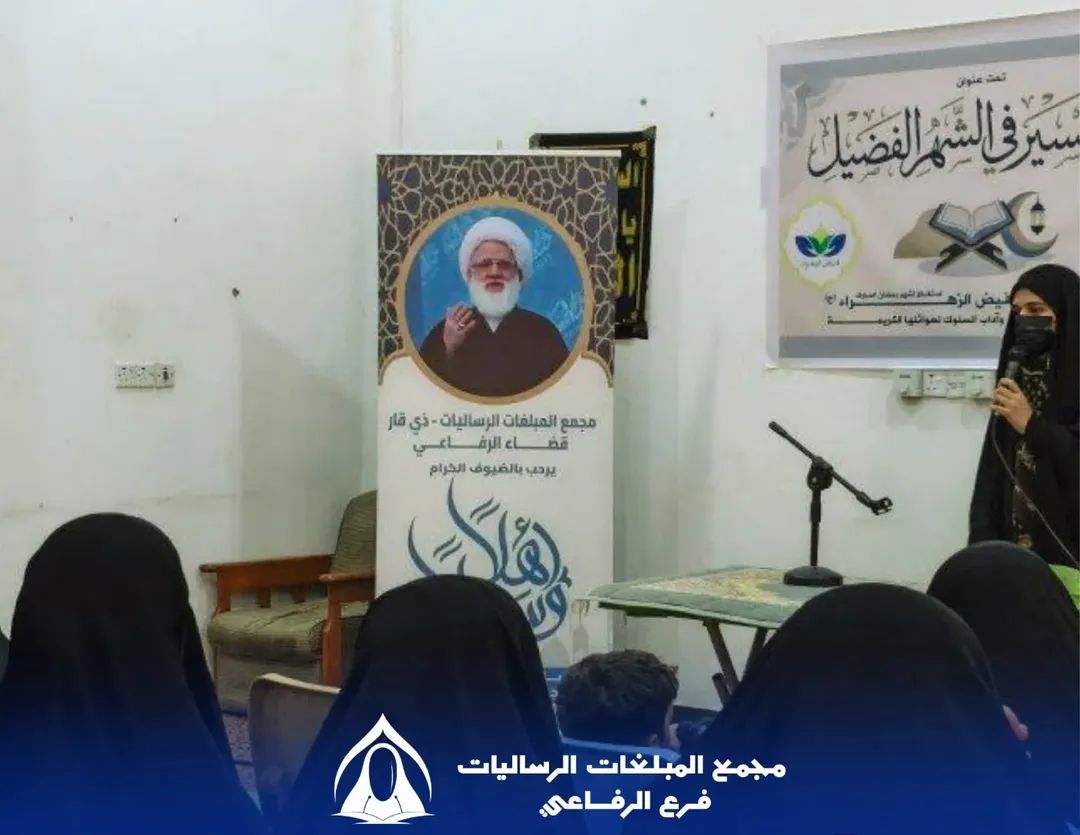 أقام مجمع المُبلّغات الرساليات في قضاء الرفاعي دورته الرمضانية المباركة تحت عنوان "زاد المسير في الشهر الفضيل"، والتي خُصصت لمجموعة من العوائل الكريمة المشمولة برعاية مؤسسة فيض الزهراء (عليها السلام).