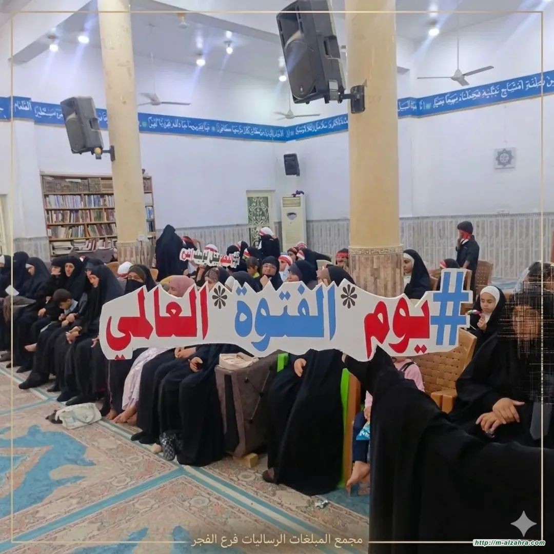 إحياءً للقيم السامية والمآثر الخالدة التي جسّدها أمير المؤمنين الإمام علي بن أبي طالب (عليه السلام)، نظّم مجمع المُبلّغات الرساليات/ فرع الفجر، بالتعاون المشترك مع معهد الزهراء (عليها السلام)، مهرجاناً ثقافياً وتوعوياً مميزاً بمناسبة "يوم الفتوة العالمي".